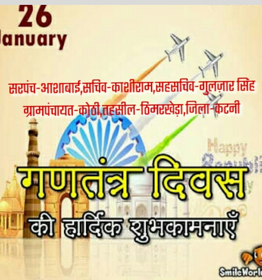 प्रदेश वासियों को ग्राम पंचायत सिमरिया विकास खंड ढीमरखेड़ा , जिला कटनी की तरफ से गडतंत्र दिवस की शुभकामनाए