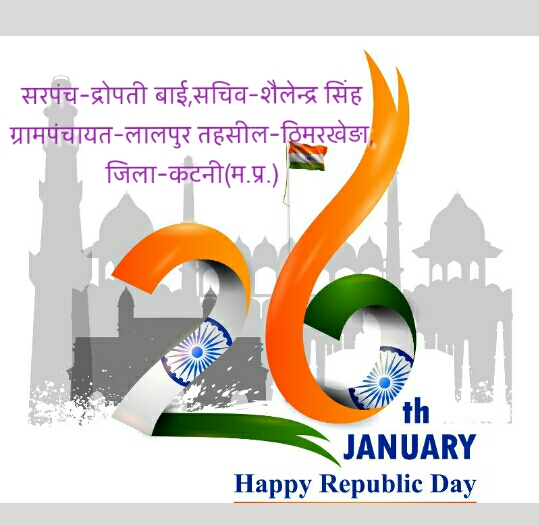 सभी प्रदेश वासियों को एवं समस्त पंचगण ग्राम पंचायत लालपुर विकासखंड ढीमरखेड़ा, जिला कटनी की तरफ से गडतंत्र दिवस की हार्दिक शुभकामनाएं