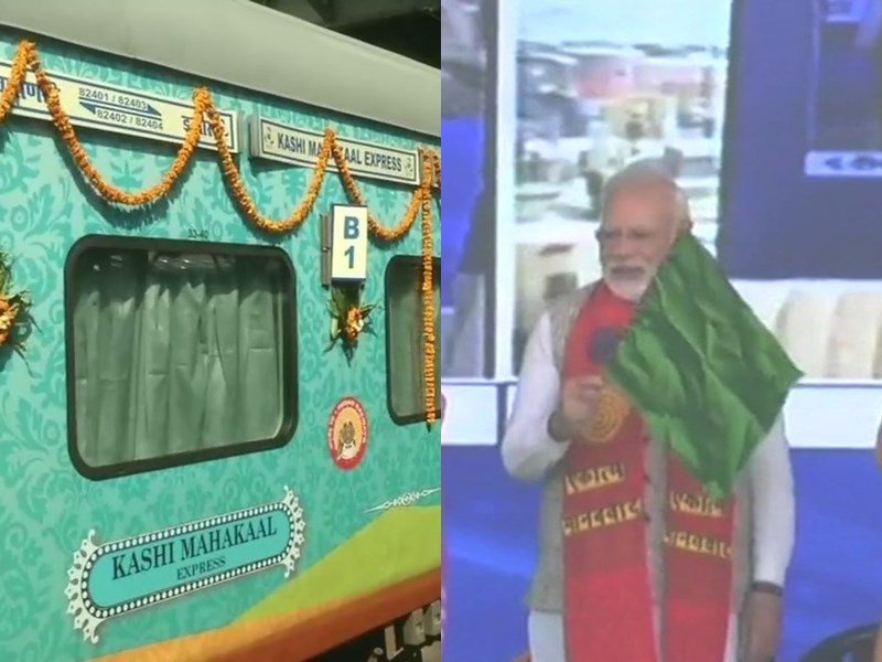 प्रधानमंत्री नरेंद्र मोदी ने हरी झंडी दिखाकर किया काशी-महाकाल एक्सप्रेस का उद्घाटन , ट्रेन तीन ज्योतिर्लिंग वाराणसी में काशी विश्वनाथ, उज्जैन में महाकालेश्वर और इंदौर के पास ओंकारेश्वर को जोड़ेगी।