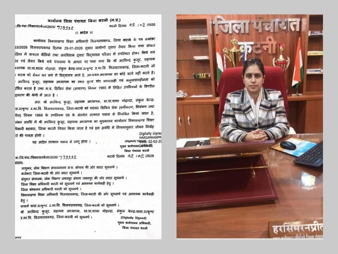 कटनी से अभिलाषा तिवारी @शराब पीकर विद्यालय आने वाला सहायक अध्यापक निलंबित।