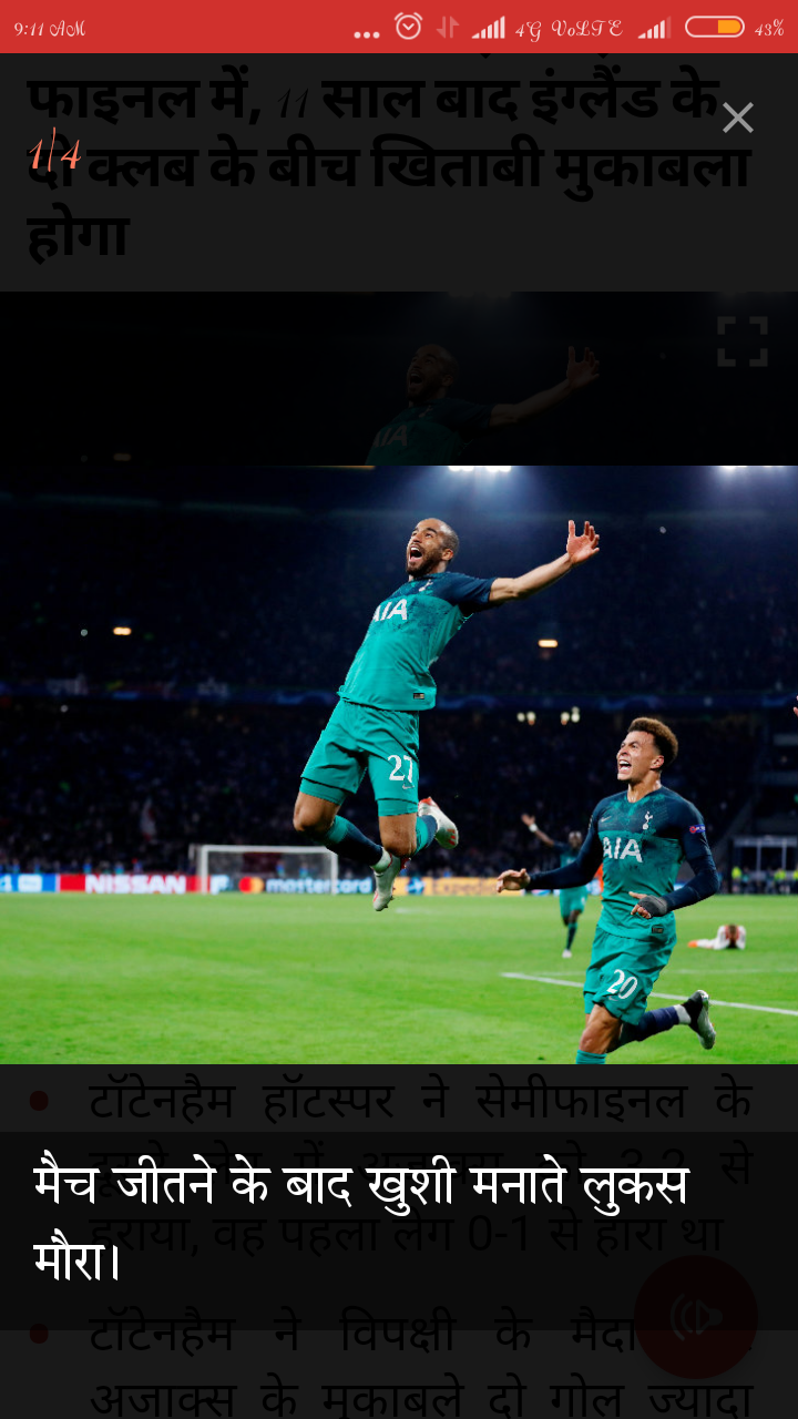 चैम्पियंस लीग में इंग्लैंड के क्लब टॉटेनहैम हॉटस्पर ने नीदरलैंड के क्लब अजाक्स को हराकर फाइनल में अपना स्थान पक्का कर लिया।